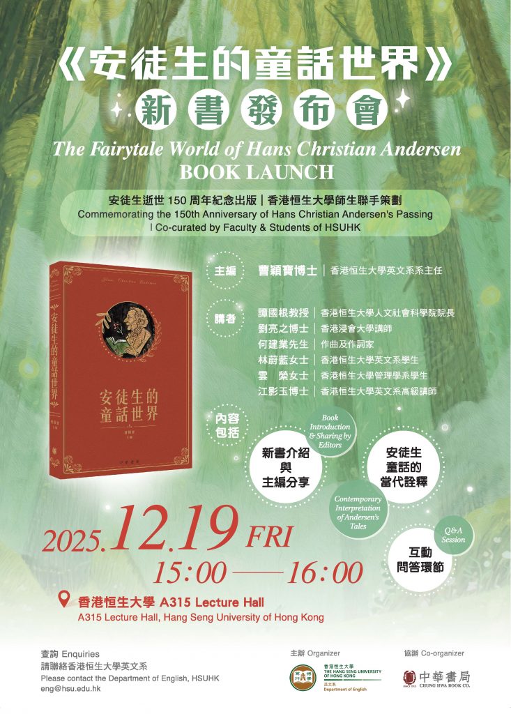 The Department of English at Hang Seng University of Hong Kong (HSUHK) is delighted to invite you, together with your school’s teachers and students, to attend the book launch of The Fairytale World of Hans Christian Andersen. Please find the event details below: