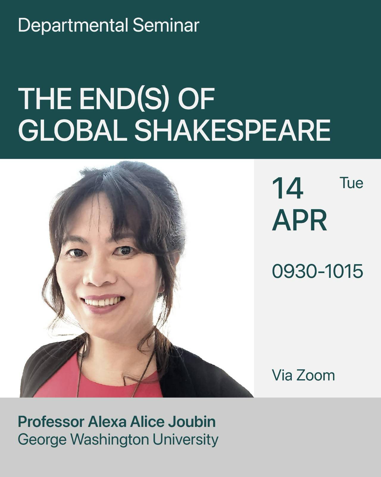 This seminar is part of the Hong Kong International Shakespeare Conference 2026. Following the seminar, there will be a book launch titled “Shakespearean Studies: New Books in the Field” by Prof. Alexa Alice Joubin and Dr. Miriam Lau. The launch will be moderated by Prof. Michael Dobson, Director of The Shakespeare Institute at the University of Birmingham. Details are available on the conference website.