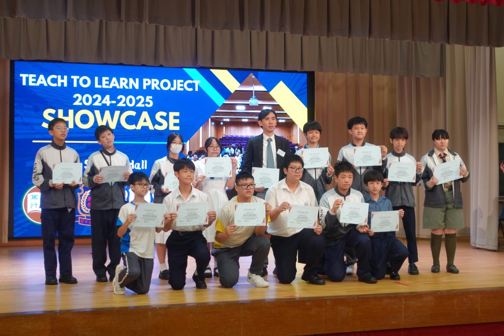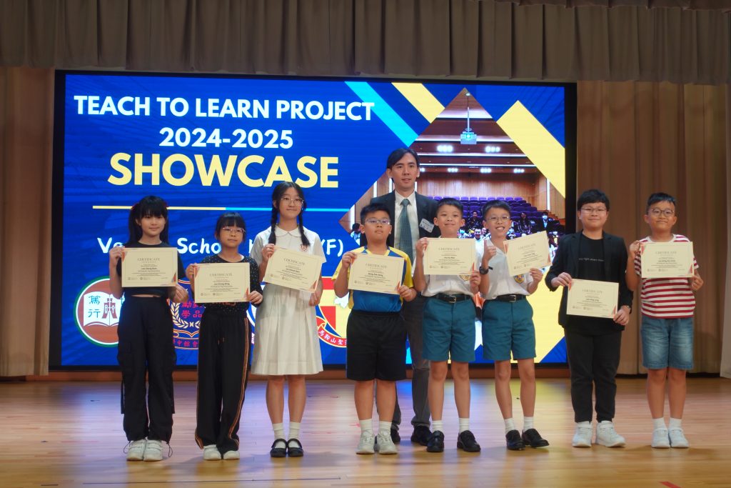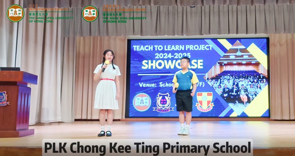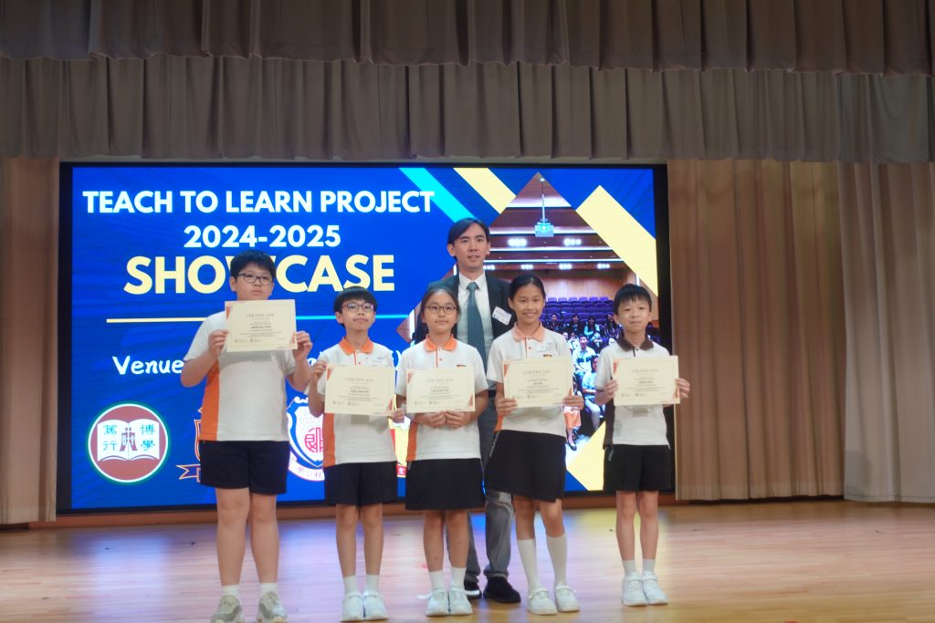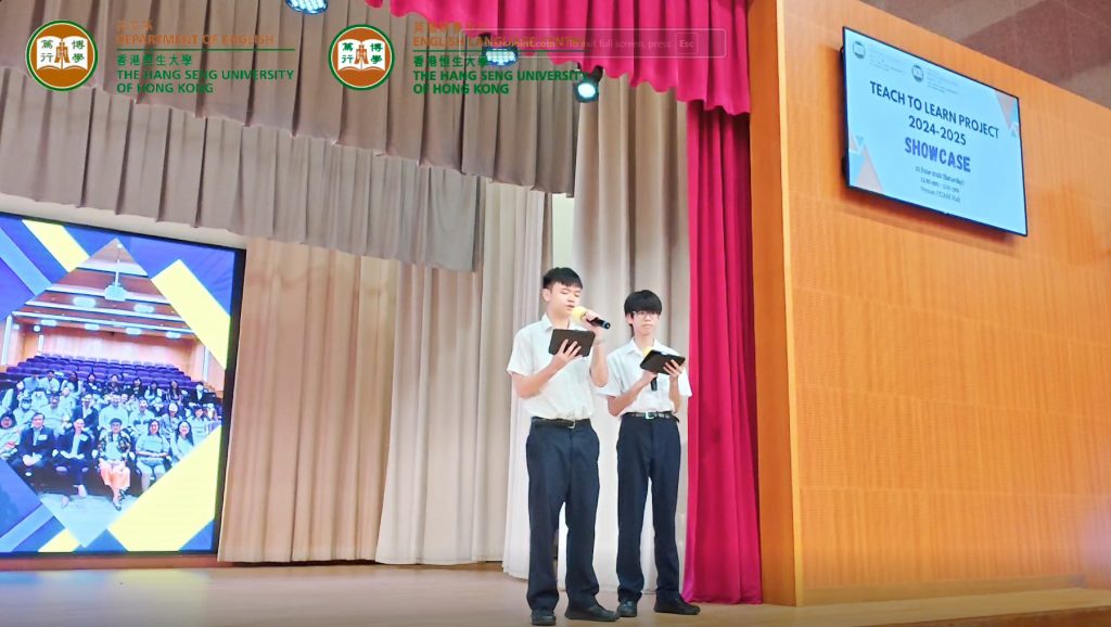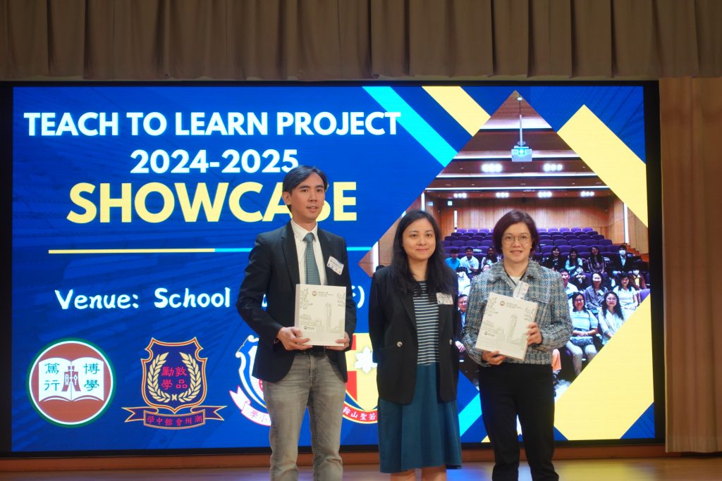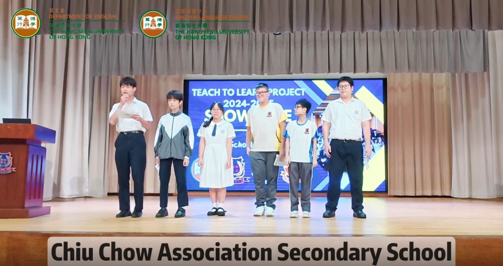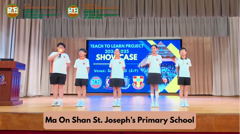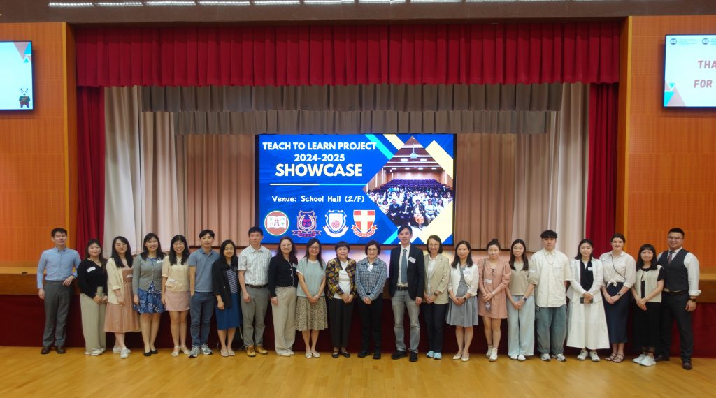 The Teach to Learn project showcase was held on June 21, 2025, at Chiu Chow Association Secondary School. Students from three participating schools presented engaging performances that highlighted their learning outcomes. The event welcomed donors and representatives from Ma On Shan St. Joseph’s Primary School, PLK Chong Kee Ting Primary School, Chiu Chow Association Secondary School, and The Hang Seng University of Hong Kong.